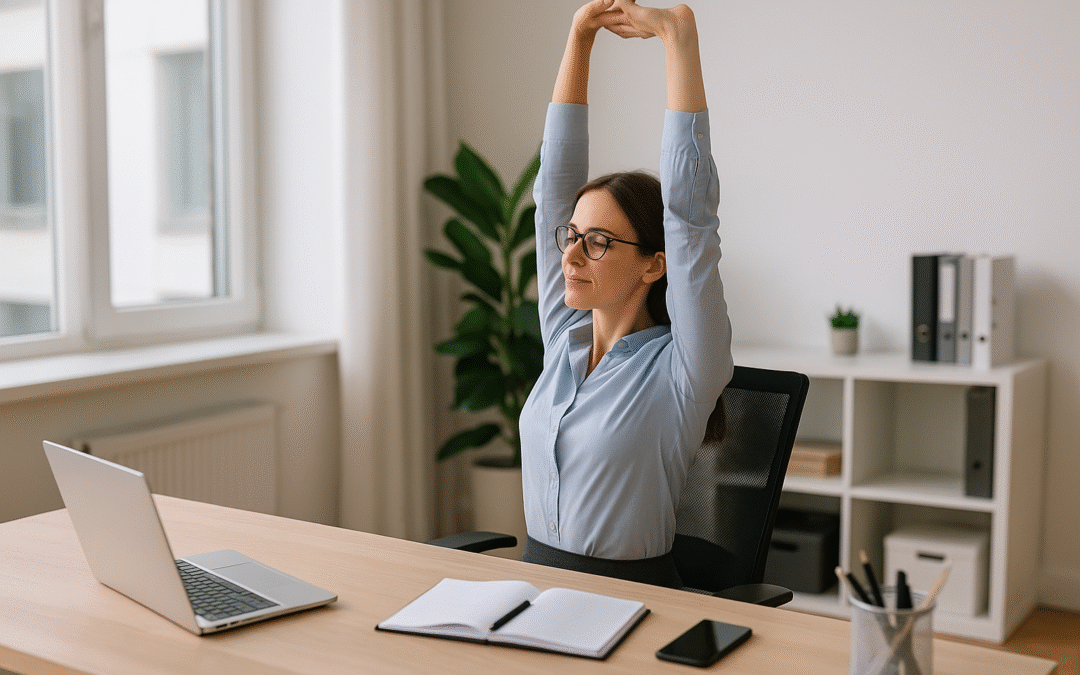 Khi phải ngồi nhiều giờ liên tục, cơ lưng, cổ và vai dễ bị căng cứng, dẫn đến đau mỏi và tư thế gù lưng. Các bài tập giãn cơ